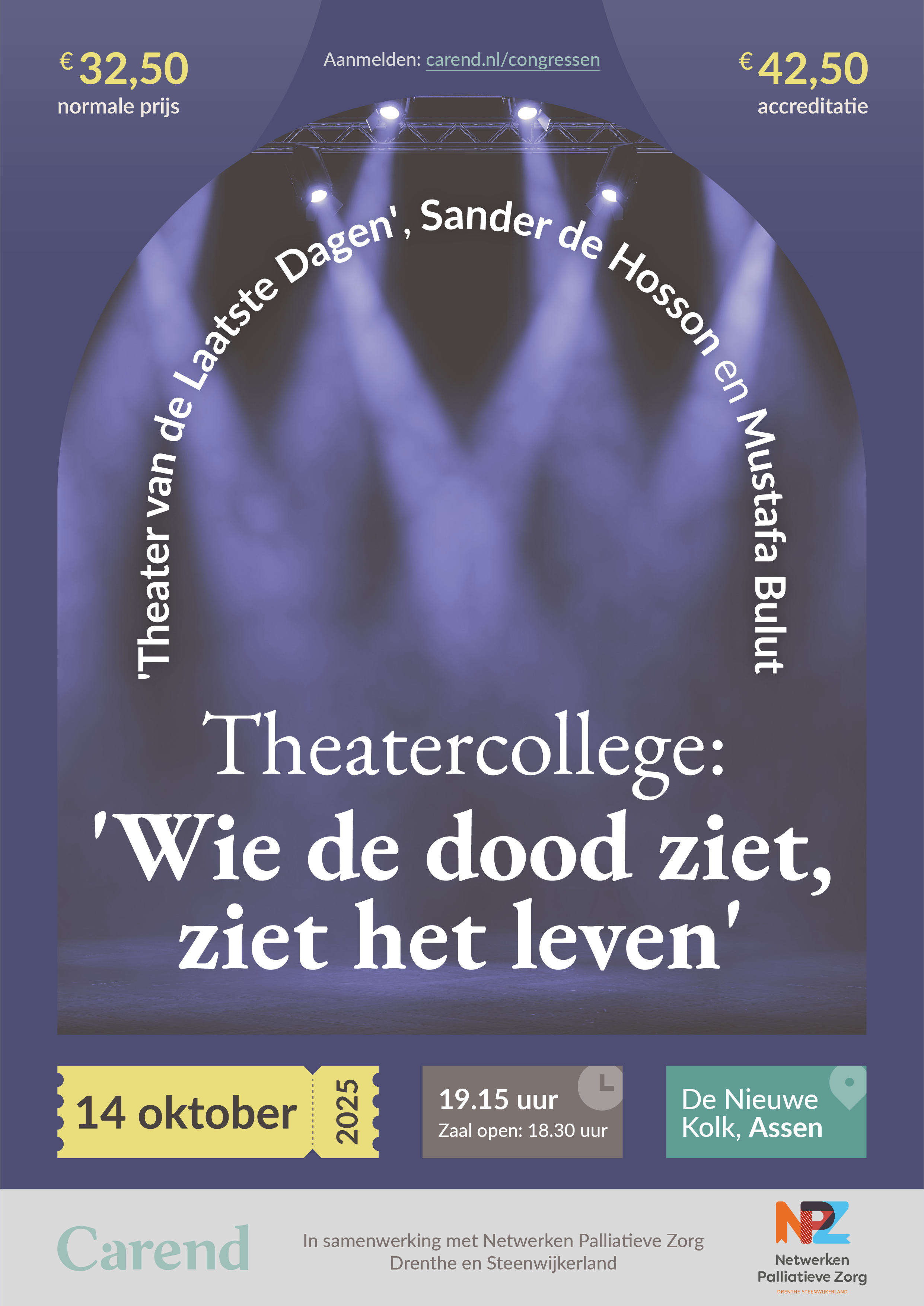 De theatercolleges zijn geaccrediteerd voor een brede groep zorgprofessionals en worden vaak aangevuld met een informatiemarkt, waar regionale organisaties hun initiatieven rond palliatieve zorg presenteren. Steeds vaker bezoeken ook teams uit zorginstellingen de avond gezamenlijk β een inspirerend uitje waarin werk en bezieling samenkomen.