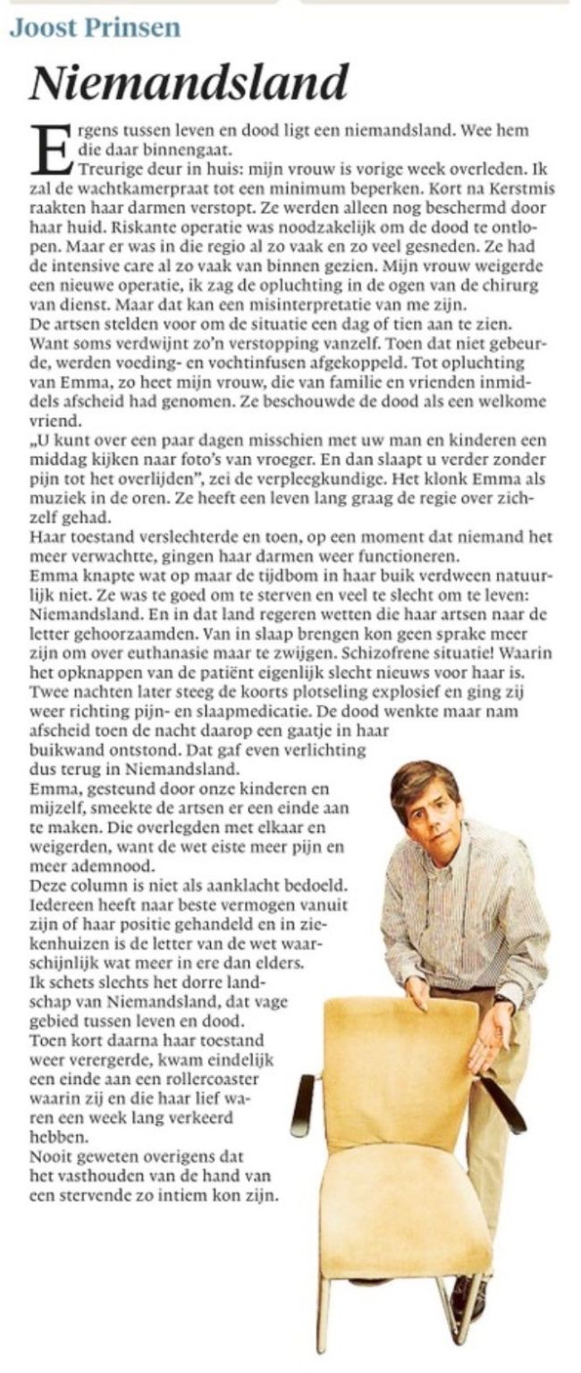 Wij herinneren ons ook zijn prachtige column over 'Niemandsland' waarin hij prachtig schreef over de dood van zijn grote liefde, een column die we jou niet graag willen onthouden.