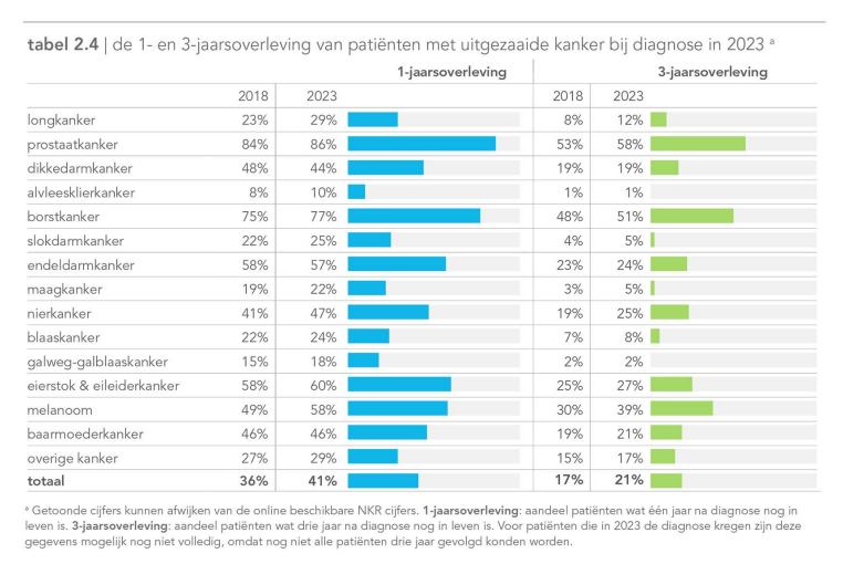 Het percentage patiënten met primair uitgezaaide kanker dat drie jaar na diagnose nog in leven is, neemt toe. In 2019-2023 was dit 21 procent, waar het in de periode 2014-2018 nog 17 procent was. Dit komt waarschijnlijk doordat een kleine groep patiënten profiteert van nieuwe behandelingen zoals doelgerichte therapie en immunotherapie. Dit blijkt uit het nieuwste IKNL-rapport ‘Uitgezaaide kanker 2025: Cijfers, inzichten en uitdagingen’, dat op 11 november 2025 wordt gepresenteerd tijdens het symposium ‘Uitgezaaid, niet uitgeleefd!’.