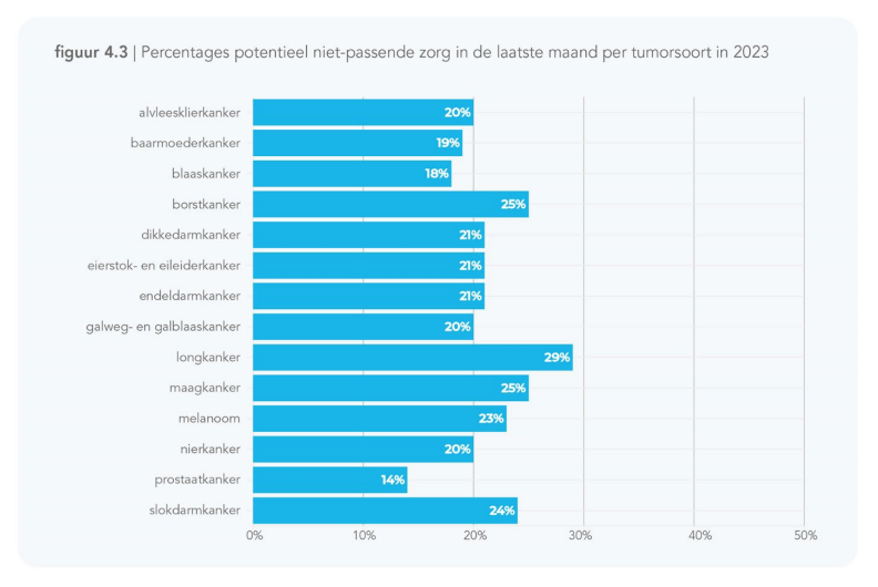 - In 2023 ontving een kwart van alle overleden patiënten met kanker potentieel niet-passende zorg in de laatste maand voor overlijden. Bij patiënten die overleden aan longkanker, borstkanker en maagkanker was dat het vaakst het geval. Bij de meeste kankersoorten ontvingen mannen vaker potentieel nietpassende zorg dan vrouwen.