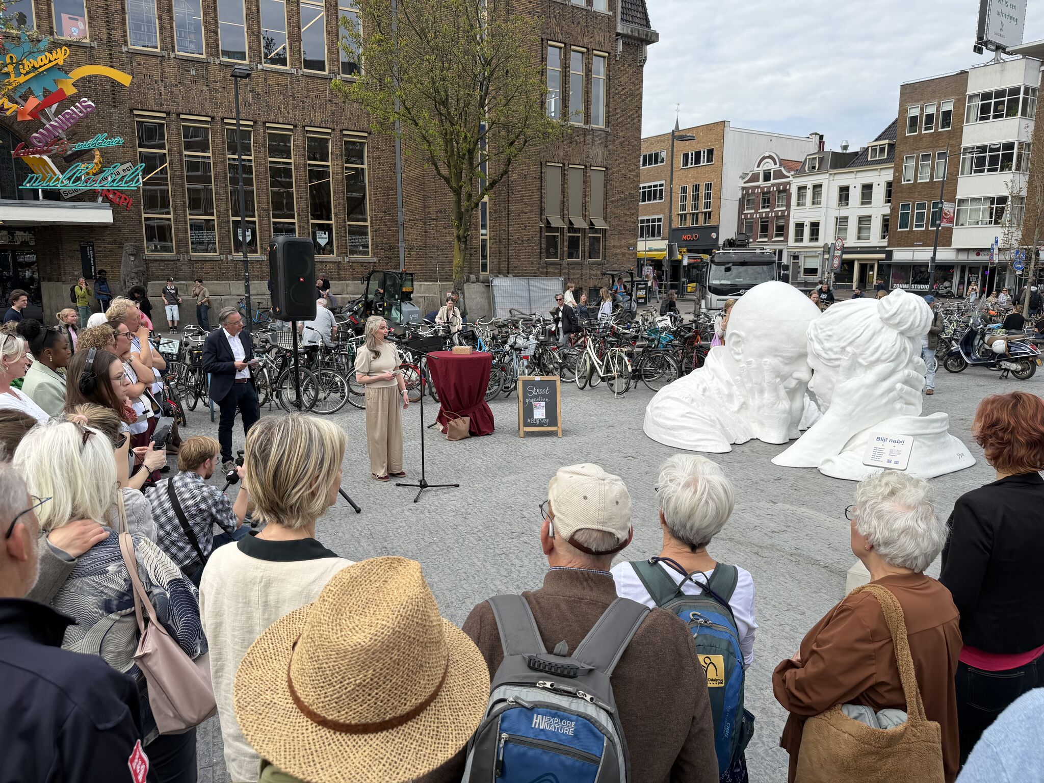 Het Kunstwerk 'Blijf Nabij' is verplaatst van Amsterdam naar Utrecht. Op Neude werd donderdag 9 april het werk van kunstenaar Saskia Stolz opnieuw onthuld. Het werk staat volledig in het teken van palliatieve zorg en is tot en met 20 april te zien.