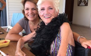 'Weet je wat je kleinzoon appte,' vraag ik. 'Het is en blijft gewoon me leuke oma en ik hou van haar.' Mijn moeder slikt. 'Ik hou ook van jou m...