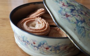 Met een zwangere buik achter de kist